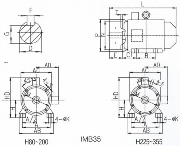 YE4 系列變頻調(diào)速三相異步電動機安裝及外形尺寸圖