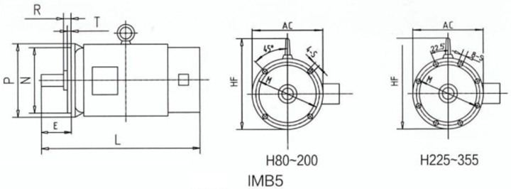 YVF2系列變頻調(diào)速三相異步電動機安裝及外形尺寸圖